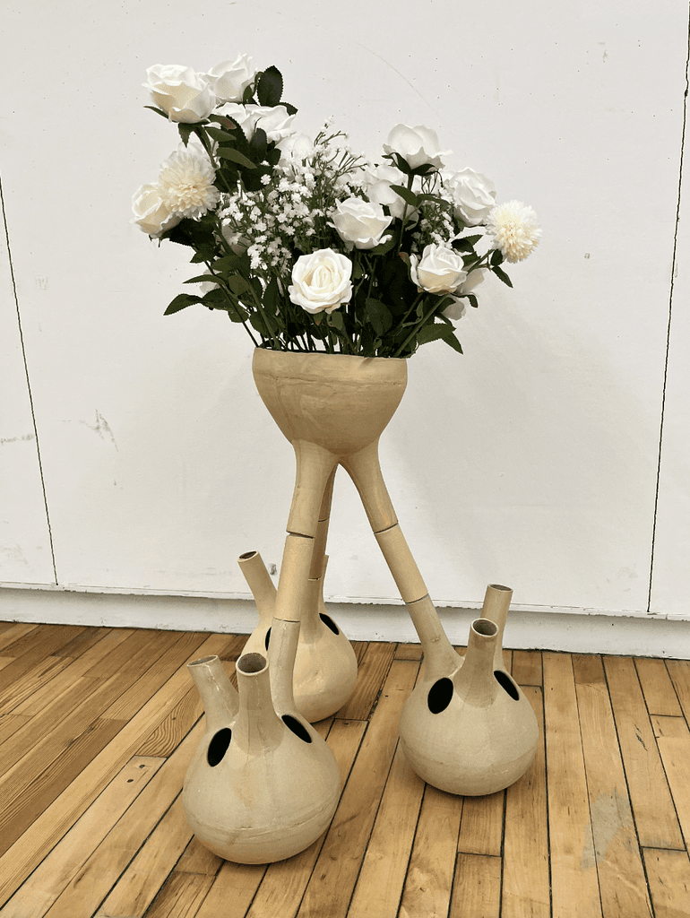 Each piece was made from one master mold. The slipcasted form could then be altered through removing material to get the two different shapes. Slipcasting was chosen as the material and method of choice due to the sustainable nature of clay slip, and the adjustability of the slip casting process.