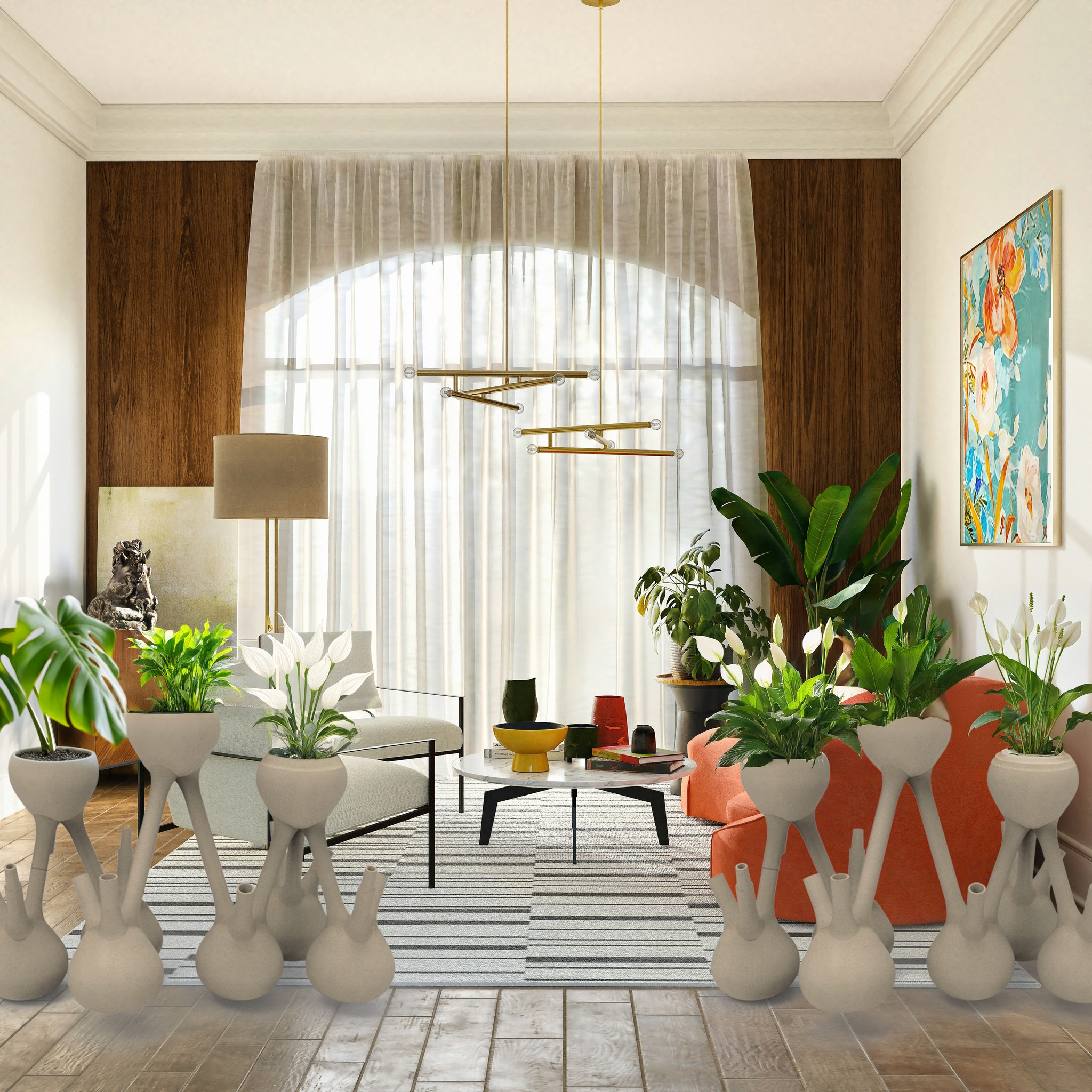 A series of modular stackable plant pots that can be used to build a room divider. Inspired by biophilia and biophilic design this project aims to challenge current ideas of modernity by bringing nature back into the home.