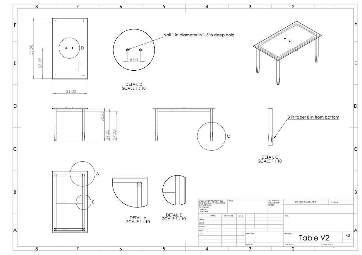 This was one of my first technical drawings it is a wooden table with fasteners.